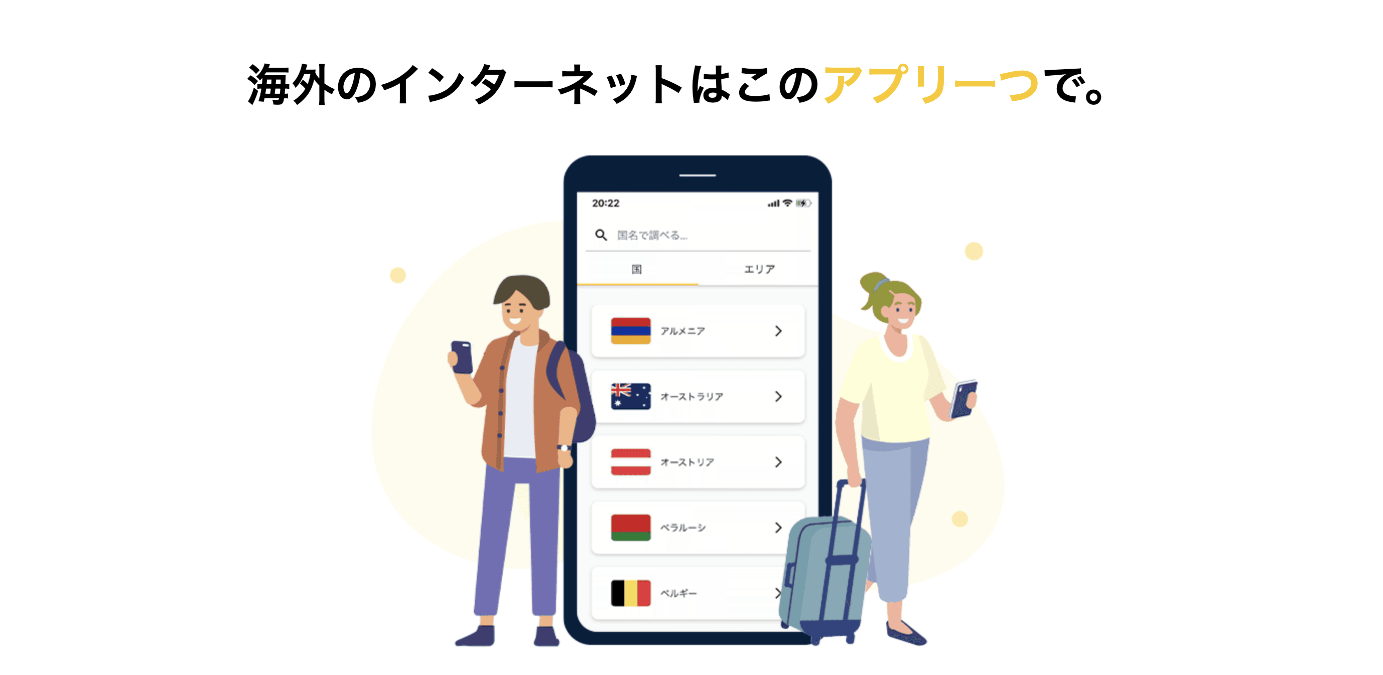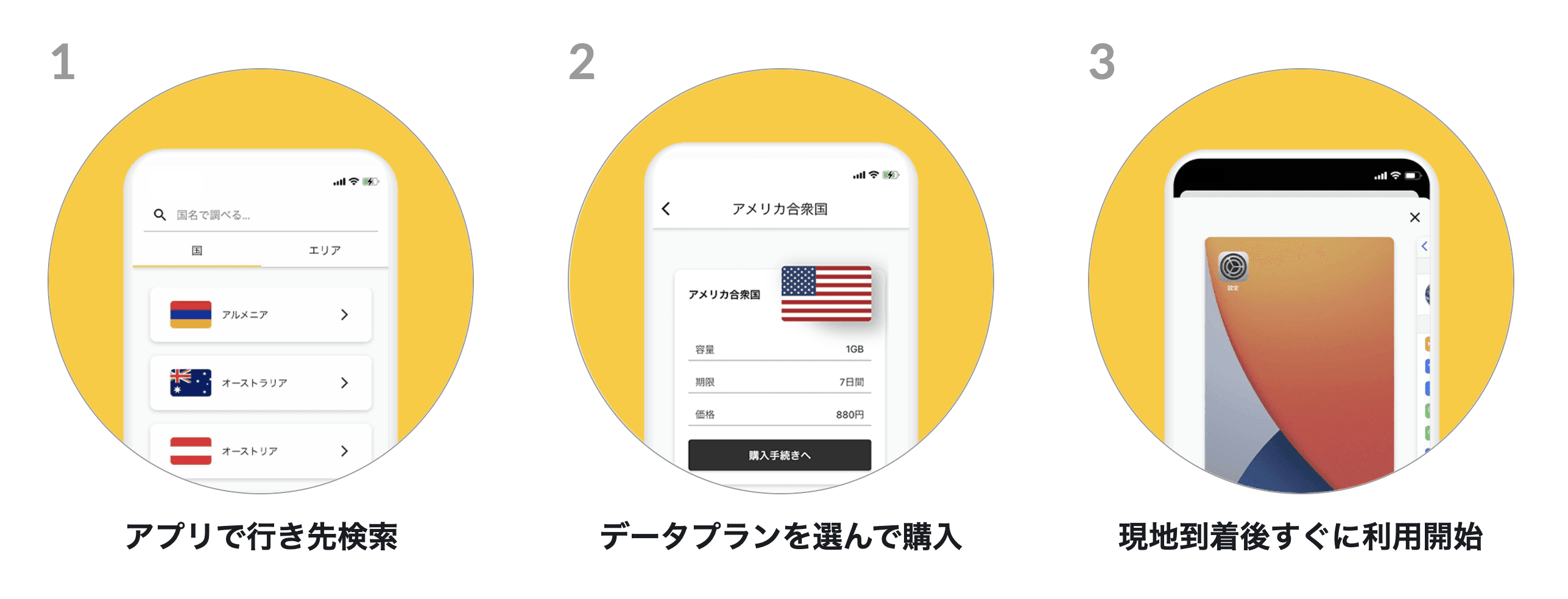 アプリを経由して旅行先のeSIMをダウンロードするだけですぐにインターネットが使えるようになります。