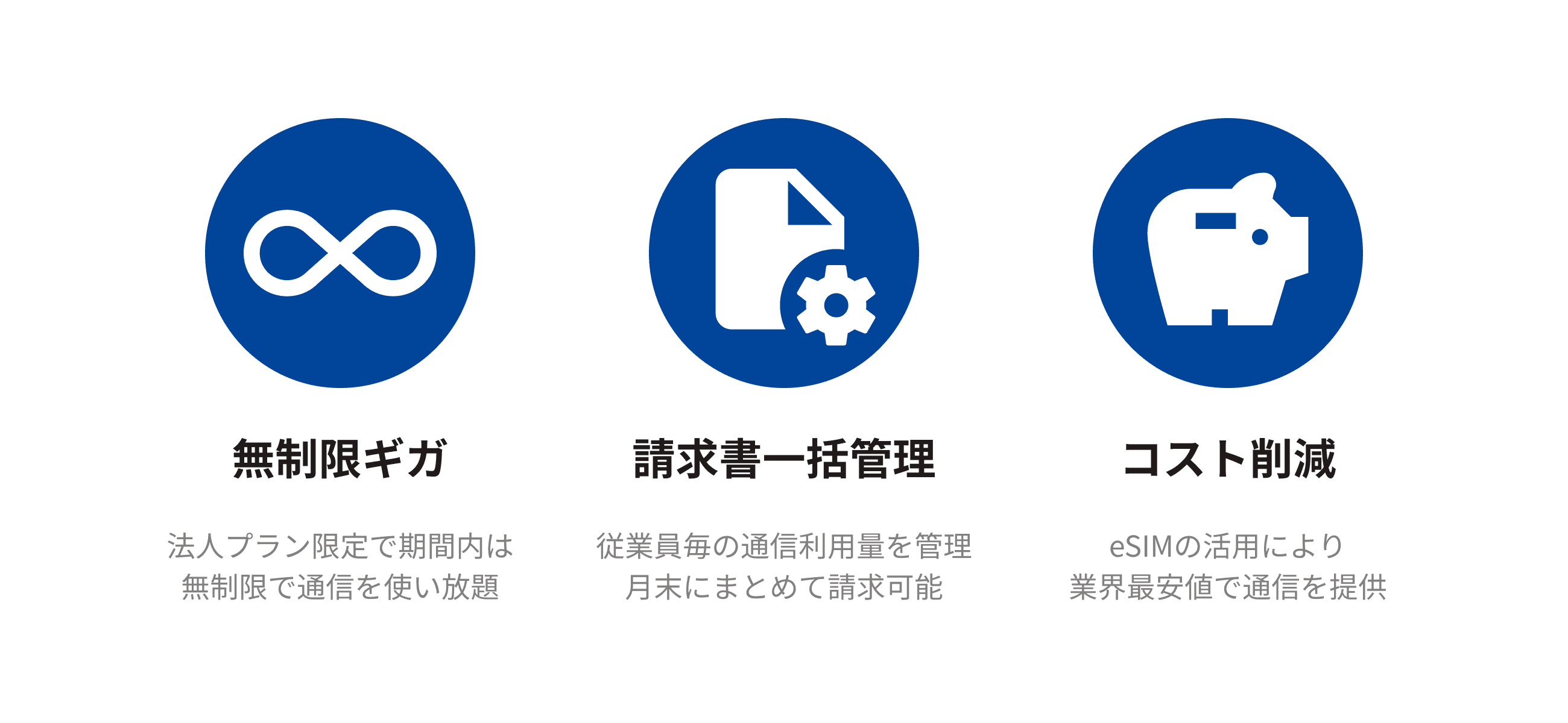 無制限の通信を提供し、利用料は利用した通信量で計算、従業員ごとの通信利用量を管理することで、通信費用の削減と業務効率の向上を実現します。