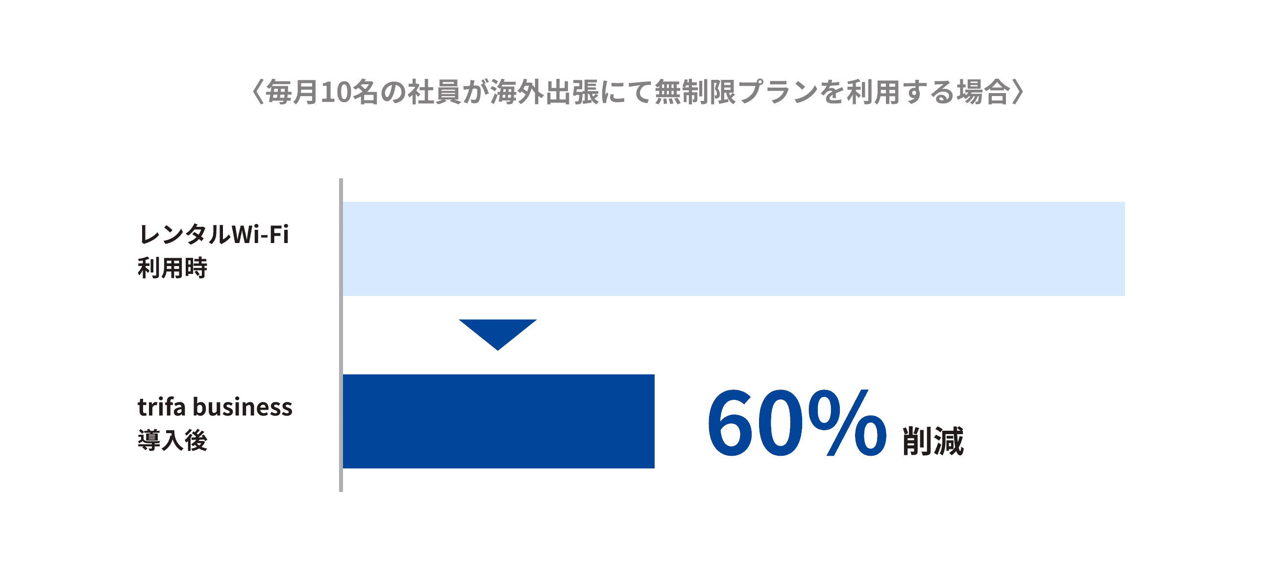 これによって一般的なモバイルWiFi利用時と比べると、trifa Business導入後は約60%以上の通信費を削減することが可能です。※1