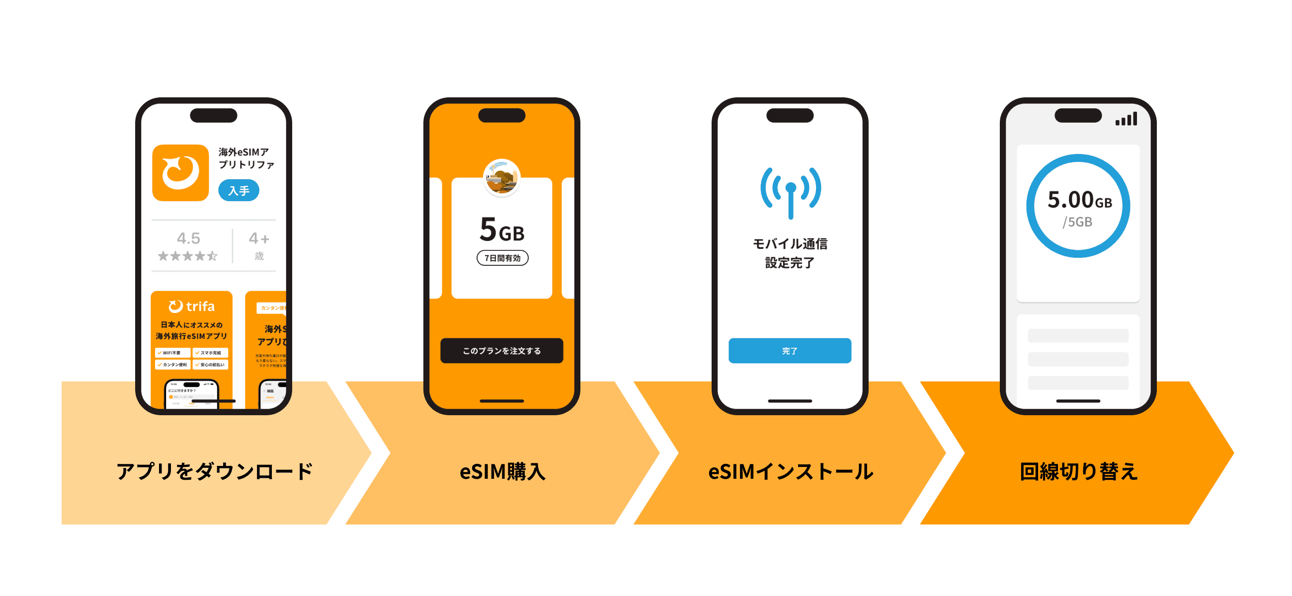 trifaを使えば、アプリ上でデータの購入・使用ができるので面倒な手続きは一切不要です。